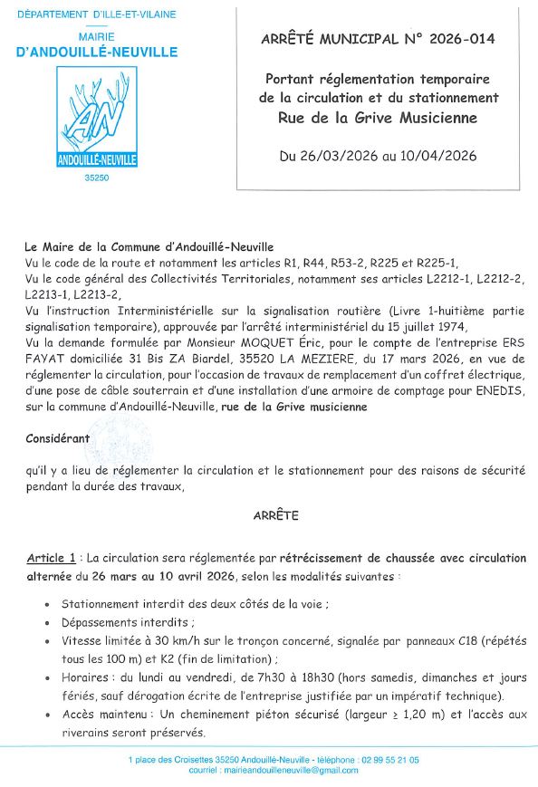 Arrêtés pour travaux – La Grive Musicienne