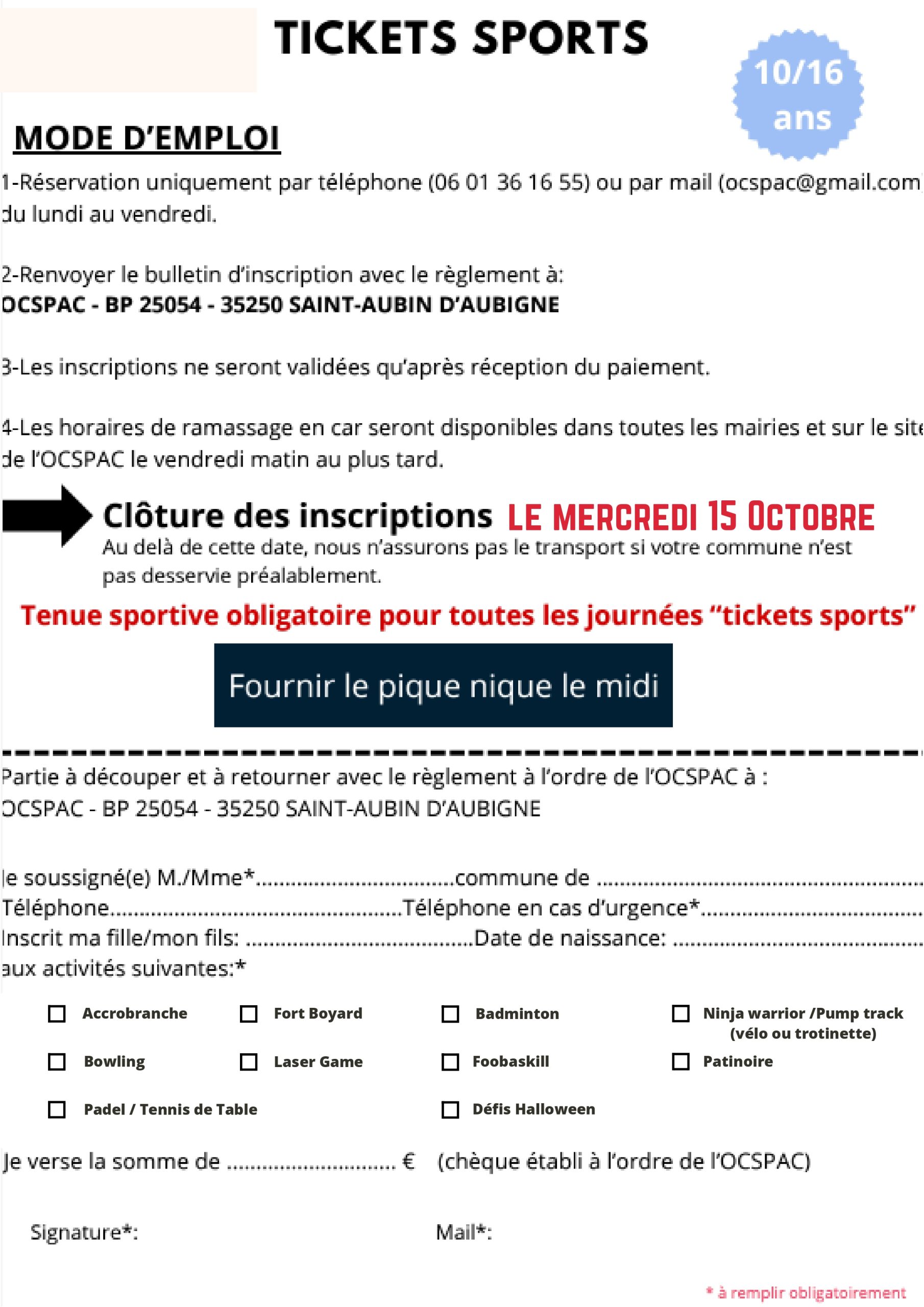 Ils sont là les tickets sports pour les vacances de la Toussaint 2025 !
