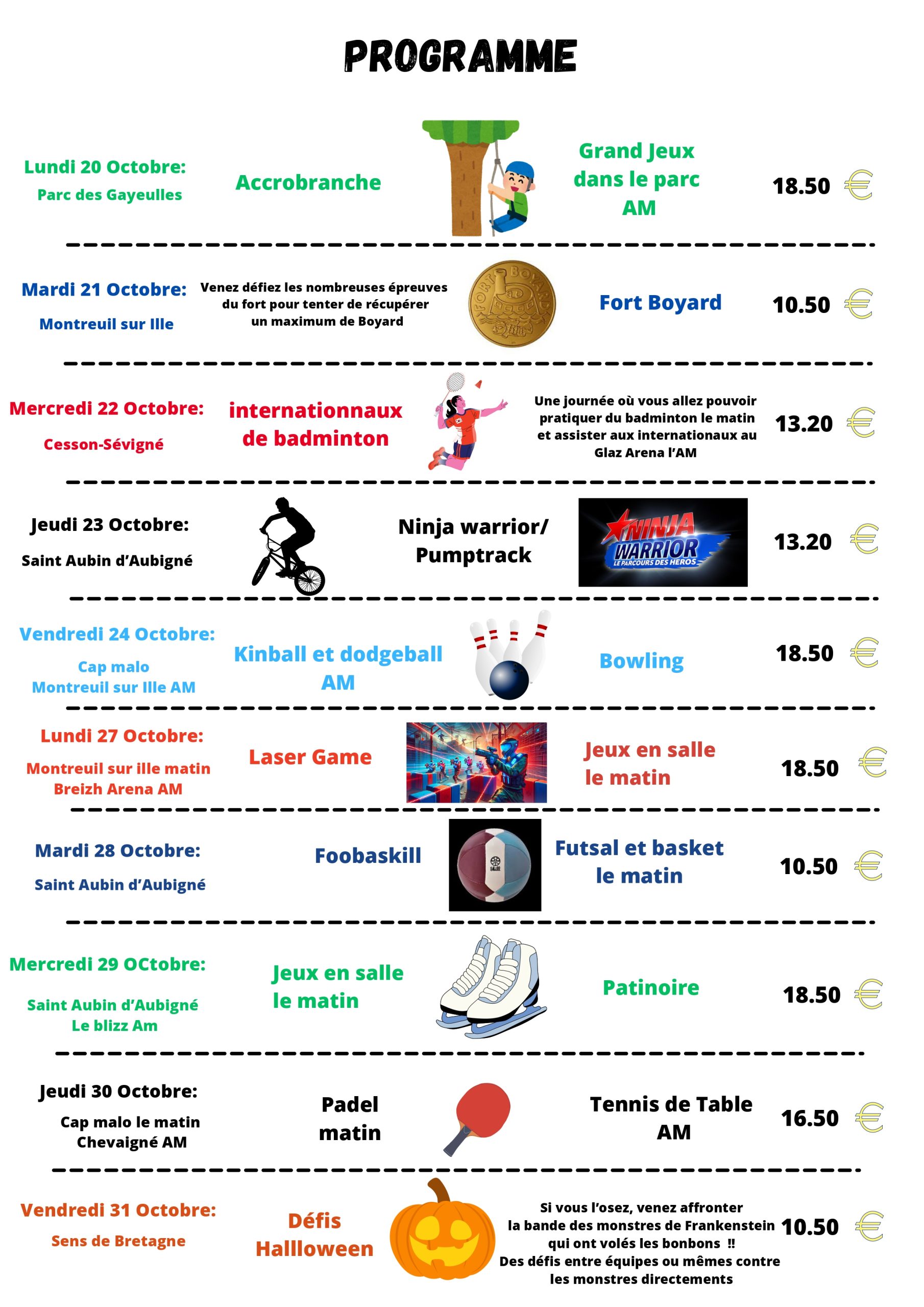 Programme du lundi 20 octobre au vendredi 31 octobre