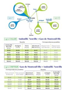 – Ligne 2 : Andouillé-Neuville (école) > Aubigné (mairie) > Feins (Noyan) > Montreuil-sur-Ille (place Rébillard)
