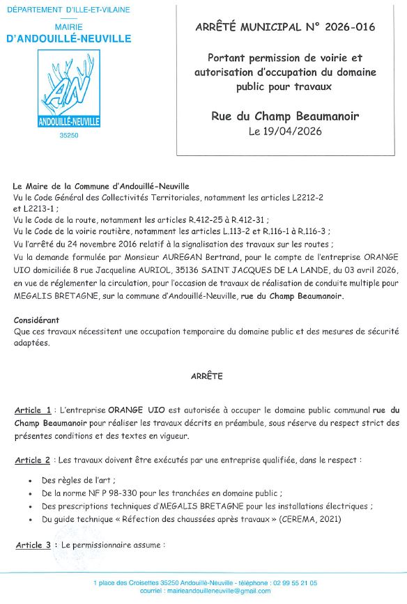 Travaux Rue du Champ Beaumanoir le 19/04/26